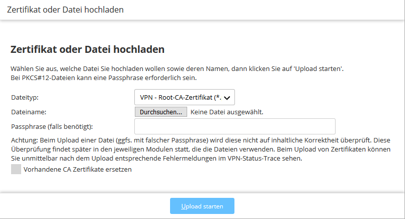 Anmerkung: Eine kombinierte PKCS#12-Datei wird beim Upload automatisch in die benötigten Teile zerlegt.