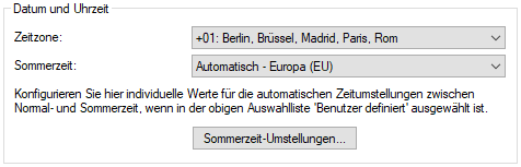 - Solange diese Option aktiviert ist, wird statisch eine Stunde zur aktuellen Systemzeit (Gebildet aus UTC und Zeitzone) hinzuaddiert.