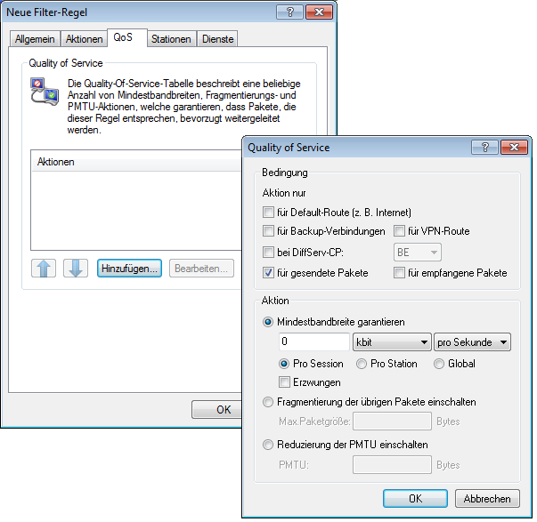 Die Bedeutung der Datenübertragungsrichtung wird im LANconfig beim Definieren der QoS-Regel festgelegt: