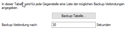 - für die Backup-Verbindung eine Haltezeit von 9999 Sekunden definiert wurde.