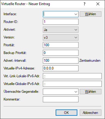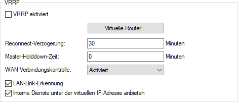 Zur Konfiguration von Ausfallsicherung (Router-Redudanz) oder Load-Balancing über VRRP können folgende Parameter eingestellt werden: