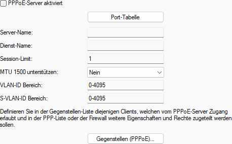 - Über diese Einstellung schalten Sie den PPPoE-Server global ein- oder aus.
