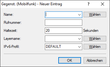 Einwahl-Gegenstellen richten Sie über Gegenstellen (Mobilfunk) ein. Abhängig vom Gerät können hier auch andere Einwahlmöglichkeiten zur Verfügung stehen.
