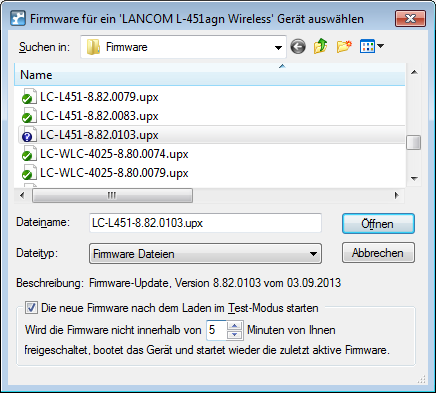 LANconfig informiert Sie dann in der Beschreibung über Art, Version und Release-Datum der Firmware.