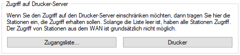 In LANconfig konfigurieren Sie den Printserver unter Management > Erweitert im Abschnitt Zugriff auf Drucker-Server.