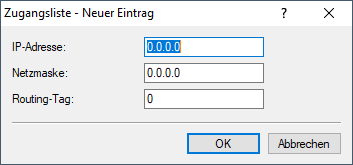 - Netzmaske zu den erlaubten Netzwerken.