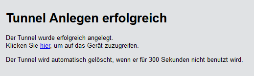 Der folgende Dialog zeigt eine Bestätigung über den neu erstellten Tunnel und bietet