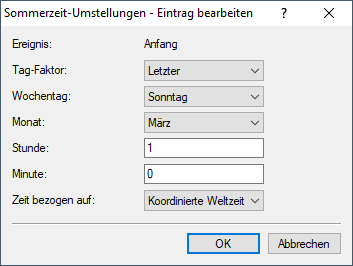 Für den Beginn und das Ende der automatischen Sommerzeitumstellung können benutzerdefinierte Werte festgelegt werden.