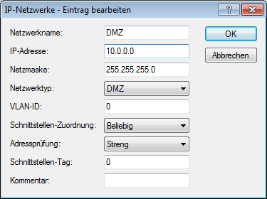 Adressprüfung bei DMZ- und Intranet-Interfaces