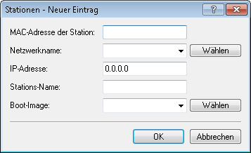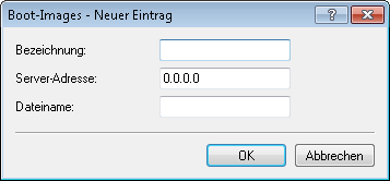 Wenn der Client das BOOTP-Protokoll verwendet, dann können Sie ein Boot-Image auswählen, über das der Client sein Betriebssystem laden soll. Den Server, der das Boot-Image zur Verfügung stellt, sowie den Namen der Datei auf dem Server müssen Sie in der Boot-Image-Tabelle eingeben.