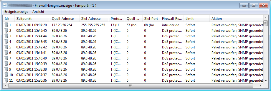 Wird die Logging-Tabelle über den LANmonitor aufgerufen, präsentiert sie sich in folgender Darstellung: