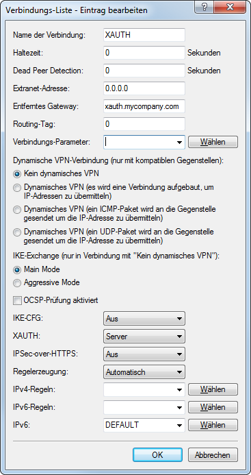 - XAUTH Aktiviert die Verwendung von XAUTH für die gewählte VPN-Gegenstelle.