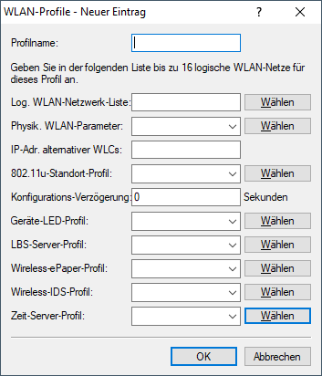 In den WLAN-Profilen werden die Einstellungen zusammengefasst, die den APs zugewiesen werden. Die Zuordnung der WLAN-Profile zu den Access Points erfolgt in der Access Point-Tabelle.
