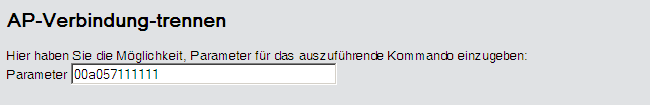- Geben Sie als Parameter für die Aktion die MAC-Adresse des APs ein, zu dem Sie die Verbindung trennen möchten, und bestätigen Sie mit Ausführen.