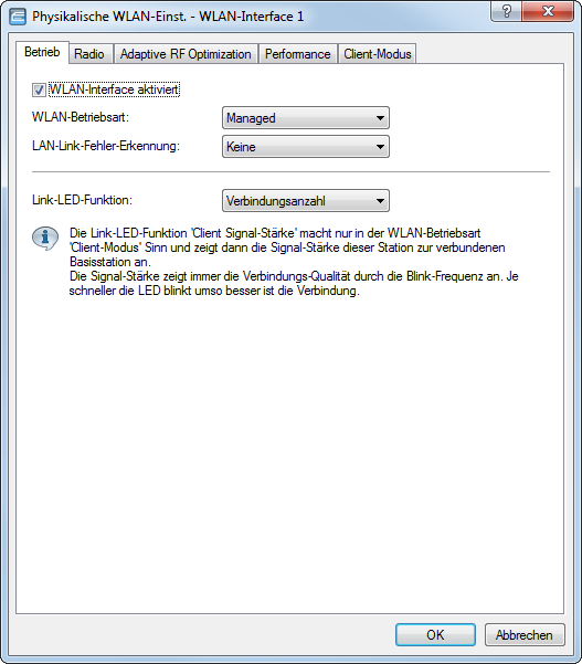 Für einzelne Geräte finden Sie die Betriebsart der WLAN-Module in LANconfig über :