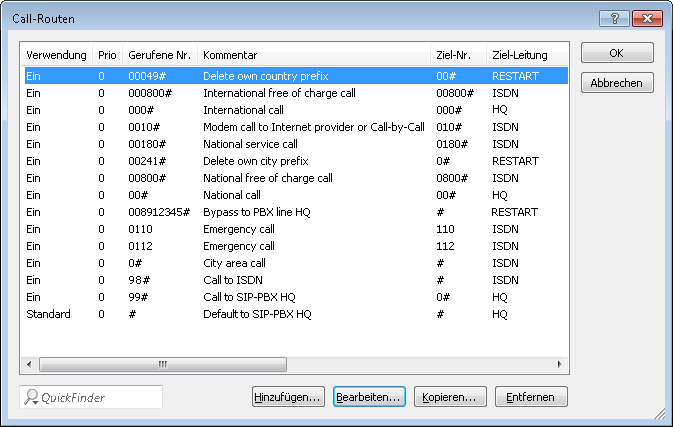 Anmerkung: Dieser spezielle Eintrag wird erst im zweiten Durchlauf der Call-Routing-Tabelle verwendet, nachdem im ersten Durchlauf bei den "normalen" Routen keine Übereinstimmung erzielt wurde und auch in der Liste der lokalen Benutzer keine passende interne Rufnummer gefunden wurde.