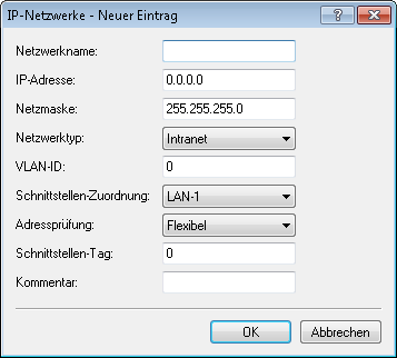 Bei der Definition eines Netzwerkes wird zunächst festgelegt, welcher IP-Adress-Kreis auf einem bestimmten lokalen Interface des Routers gültig sein soll. "Lokale Interfaces" sind dabei logische Interfaces, die einem physikalischen Ethernet- (LAN) oder Wireless-Port (WLAN) zugeordnet sind. Um die oben aufgeführten Szenarien zu realisieren, können durchaus mehrere Netzwerke auf einem Interface aktiv sein – umgekehrt kann ein Netzwerk auch auf mehreren Interfaces aktiv sein.