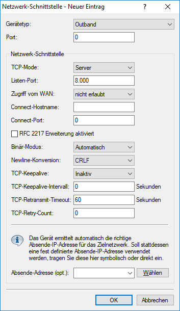 - Auf diesem TCP-Port erwartet der COM-Port im TCP-Server-Modus eingehende Verbindungen.