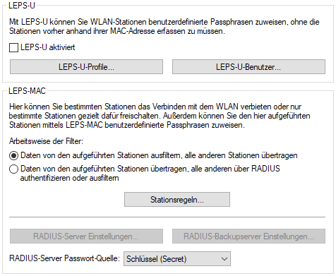 In LANconfig konfigurieren Sie die Stationen (Clients), die sich über WLAN anmelden können, unter .