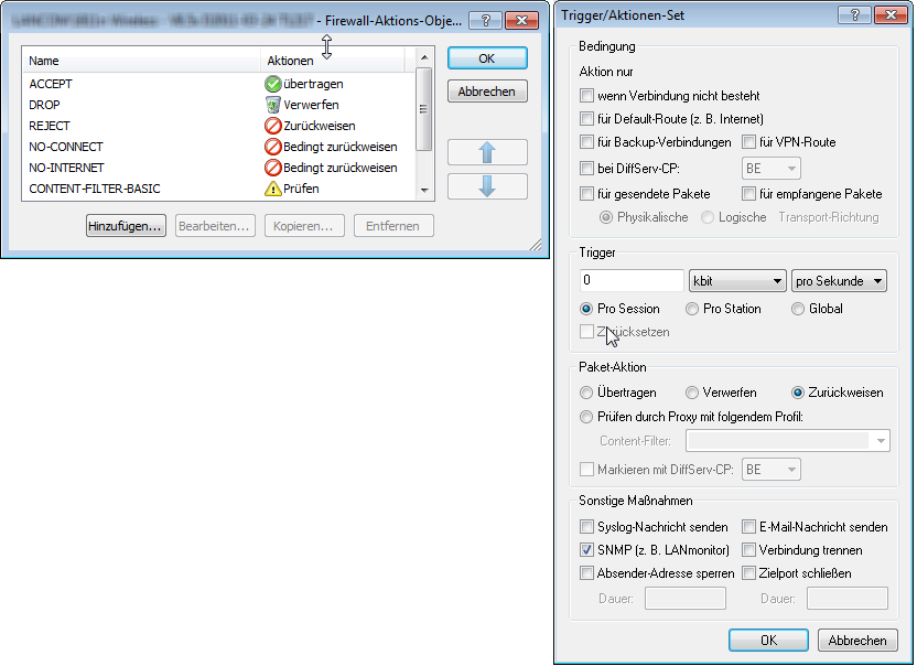 | Konfiguration der Firewall mit LANconfig / Definition der Firewall-Objekte | |