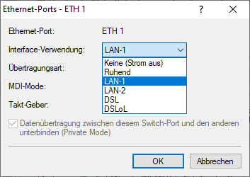 - Die Schnittstelle ist einem logischen LAN zugeordnet.