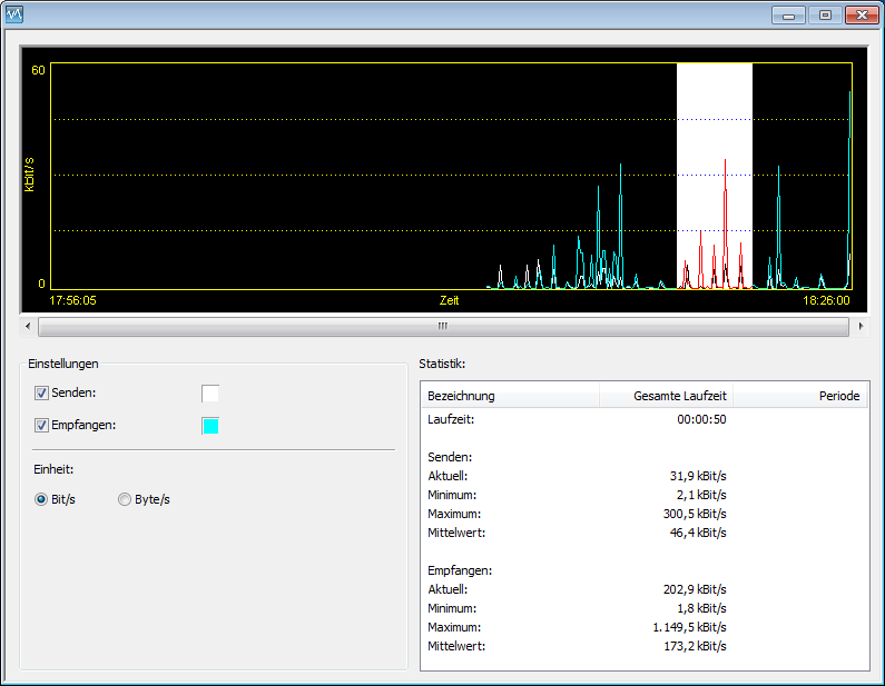 Indem Sie mit der linken Maustaste im aktuellen Graph eine Periode markieren, bekommen Sie deren Werte in der Statistik separat angezeigt.