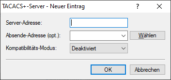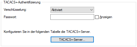 - Adresse des TACACS+-Server, an den die Anfragen für Authentifizierung, Autorisierung und Accounting weitergeleitet