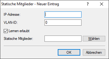 - Die VLAN-ID, auf welche die Bridge diese statische Mitgliedschaft anwenden soll. Für eine IP-Multicast-Adresse können