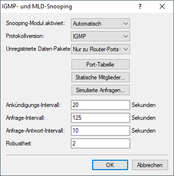 IGMP- / MLD-Anfragen erwartet. Diese regelmäßigen Abfragen beeinflussen den Zeitpunkt, nach dem die Mitgliedschaft