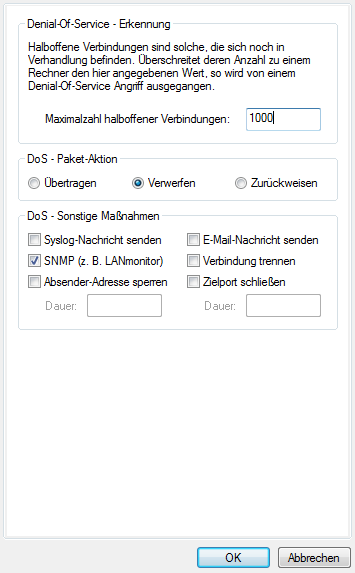 halboffenen Verbindungen die Aktionen zur Abwehr von DoS-Angriffen ausgelöst werden