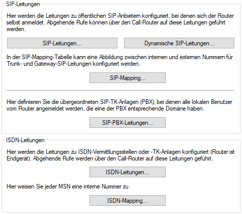 Die Konfiguration der Leitungsparameter erfolgt unter .