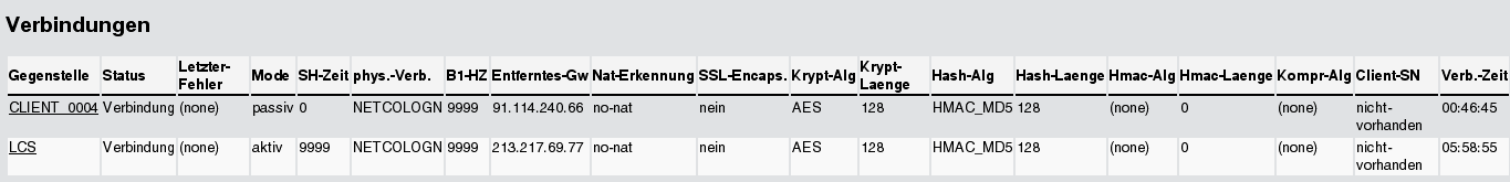 Die Statusanzeigen zu jeder aktiven VPN-Verbindung zeigen an, ob für die jeweilige Verbindung die IPSec-over-TTPS-Technologie (SSL-Encapsulation) genutzt wird.