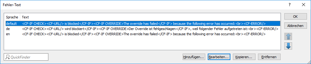- Beispiel: <CF-URL/> wird verboten, weil ein Fehler aufgetreten ist:<br><CF-ERROR/>