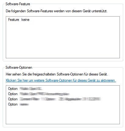 Auf dieser Seite erhalten Sie nähere Informationen zu den vom Gerät unterstützten Features und freigeschalteten Optionen.