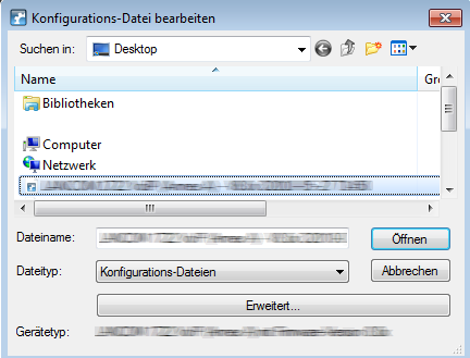 Über diesen Menüpunkt wählen Sie eine gespeicherte Konfigurationsdatei aus, um sie im Kofigurationsdialog zu bearbeiten.