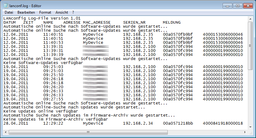 Über diesen Menüpunkt können Sie die Protokolldatei von LANconfig ansehen und bearbeiten.