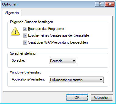 - Windows-Systemstart: Wählen Sie hier, wie LANmonitor sich beim Starten von Windows verhalten soll.