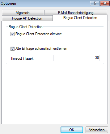 In diesem Dialog nehmen Sie Einstellungen zur "Rogue Client Detection" vor. Weitere Informationen zu dieser Funktion finden Sie im Kapitel Rogue-Detection-Funktion.