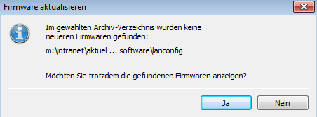 Um das Update auf neue Firmwareversionen in den Geräten möglichst komfortabel zu gestalten, werden die Firmware-Dateien für die verschiedenen Modelle und LCOS-Versionen idealerweise in einem zentralen Archiv-Verzeichnis abgelegt. Die Suche nach neuen Firmware-Versionen in diesem Verzeichnis kann entweder manuell angestoßen werden oder nach jedem Start von LANconfig automatisch durchgeführt werden.