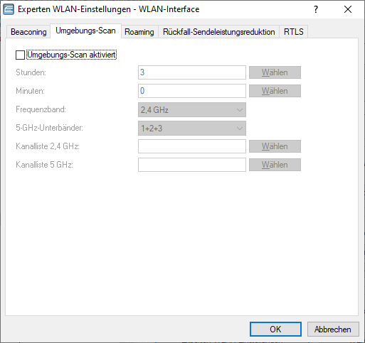- Aktiviert / deaktiviert den Umgebungs-Scan.Anmerkung: Die nachfolgenden Parameter sind ausgegraut, falls der Umgebungs-Scan deaktiviert ist.