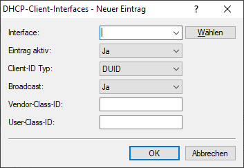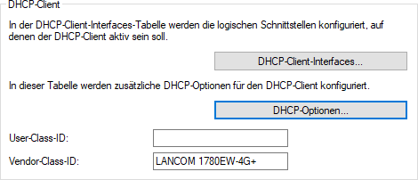 - String, der den Vendor-Class-Identifier enthält, der auf dme Interface gemeldet werden soll. Wenn dieser Wert leer ist, dann wird der (globale) Wert unter verwendet.
