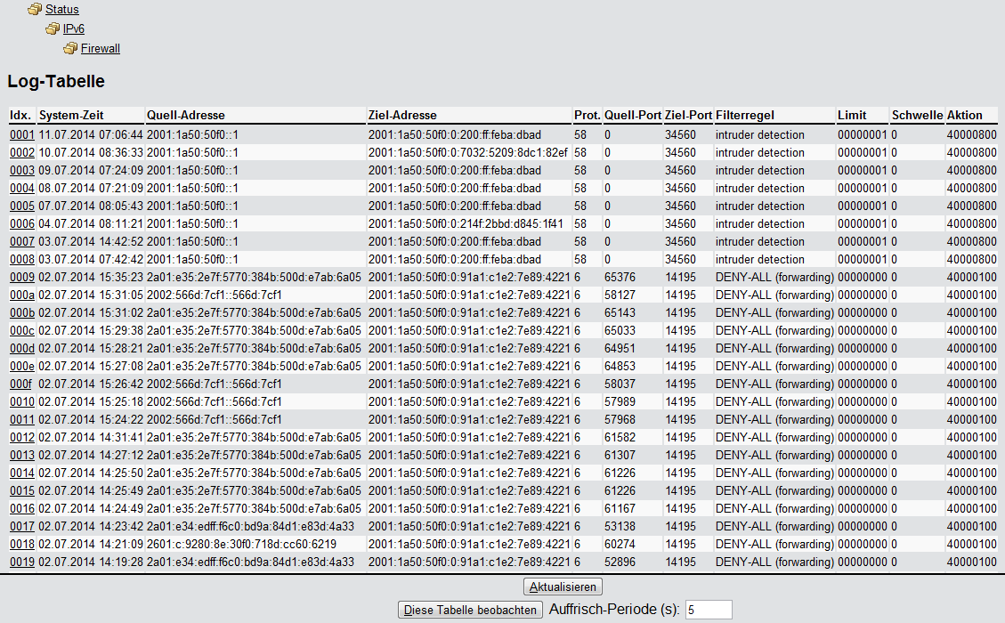 Sie können die IPv6-Log-Tabelle im WEBconfig über öffnen.