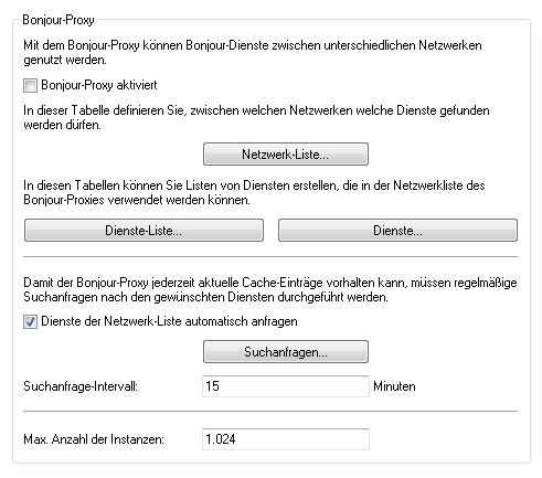 Aktivieren oder deaktivieren Sie mit dieser Checkbox den Bonjour-Proxy.