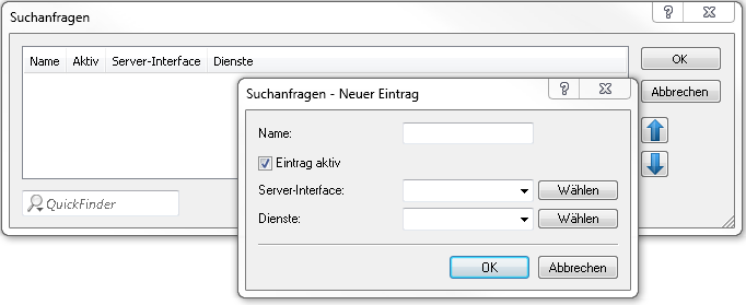 Anmerkung: Sollte diese Einstellung deaktiviert sein, ist es erforderlich, die abzufragenden Dienste manuell in die Tabelle Suchanfragen einzutragen.