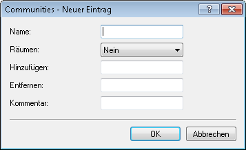 Anmerkung: Bekannte Communities lassen sich nicht aus NLRI entfernen. Bekannte Communities sind:Folgende Eingabeformate sind für Communities möglich: