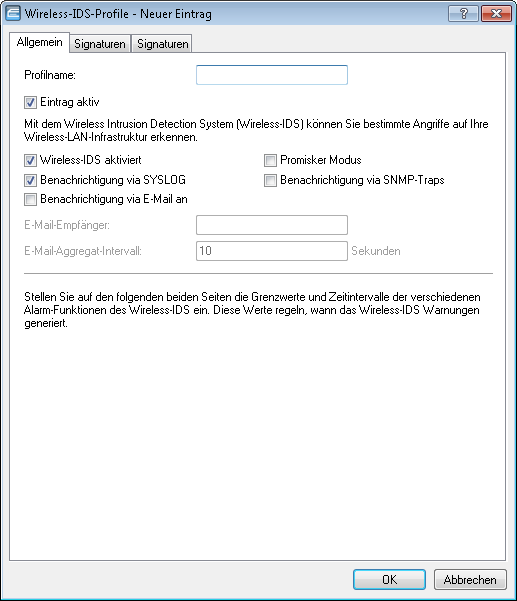 Anmerkung: Die Angabe eines Profilnamens ist für die Konfiguration der WIDS-Signaturen notwendig.