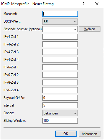 Zur Konfiguration der ICMP-Messprofile wechseln Sie in die Ansicht .