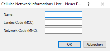- Vergeben Sie hierüber einen Namen für die Mobilfunk-Identität, z. B. ein Kürzel des Netzanbieters in Kombination mit dem verwendeten Mobilfunkstandard. Dieser Name erscheint später im ANQP-Profil in der Auswahl für die Cellular-Liste.