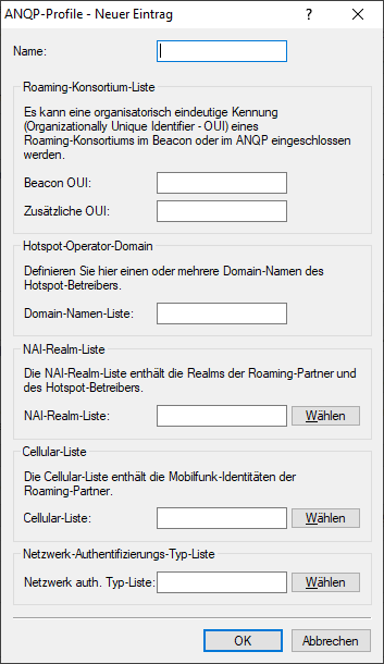 Vergeben Sie hierüber einen Namen für das ANQP-Profil. Dieser Name erscheint später innerhalb der Interfaces-Tabelle in der Auswahlliste für die ANQP-Profile.