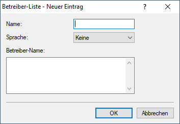- Vergeben Sie hierüber einen Namen für den Eintrag, z. B. eine Indexnummer oder Kombination aus Betreiber-Name und Sprache.